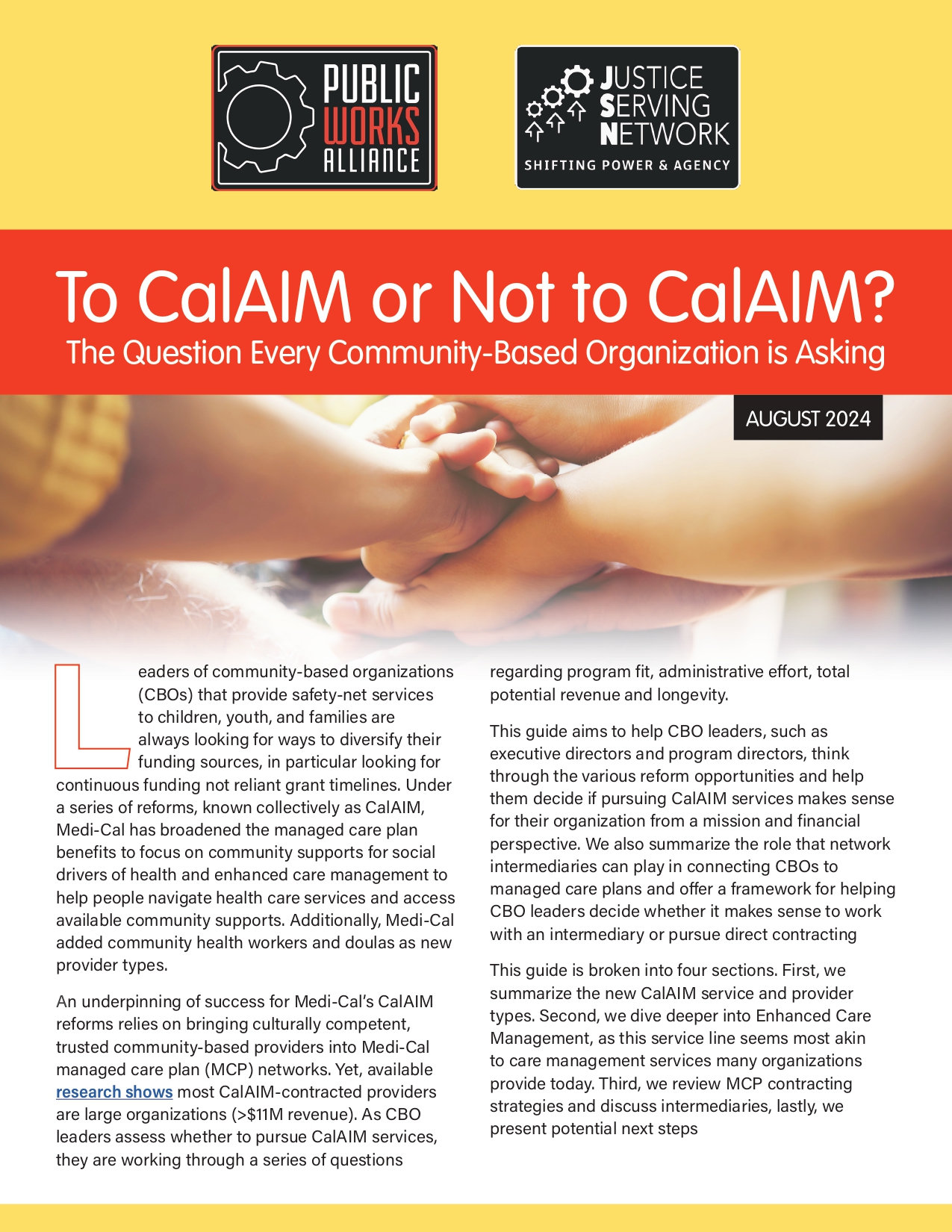 Safe & Sound and the Family Services Alliance informed the development of this guide to help CBO leaders decide if pursuing CalAIM services makes sense for their organization from a mission and financial perspective. Learn More.